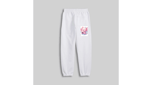 Experience peak comfort with a splash of cuteness. These ultra-soft white joggers feature our signature boba-sipping axolotl, making them the ultimate choice for gaming marathons, boba runs, or just a cozy night in.