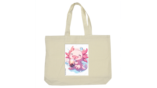 Carry your essentials (and your favorite tea) in style! This natural canvas tote bag features our signature boba-sipping axolotl, bringing a touch of joy to your daily errands. It’s the perfect blend of sustainable living and "Kawaii" aesthetics.