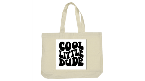 Cool style, carried everywhere! This durable canvas tote features our signature "Cool Little Dude" graphic in a bold, wavy retro font. The high-contrast black-on-white block design makes a statement while staying versatile enough to match any outfit.