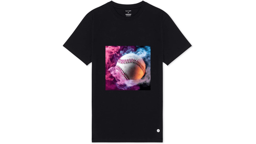 Bring the heat to every inning! This isn't just a baseball shirt; it's a visual representation of a 100-mph fastball cutting through the air. Featuring a hyper-realistic baseball enveloped in vibrant, swirling clouds of electric blue and hot pink smoke, this tee captures the raw energy and intensity of the diamond.