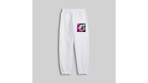Bring the heat to your everyday style! These crisp white joggers feature the signature "Cosmic Heat" graphic on the thigh, showcasing a hyper-realistic baseball cutting through vibrant, swirling clouds of electric blue and hot pink smoke. The neon "vaporwave" aesthetic creates a striking contrast against the optic white fabric, making these sweatpants a standout choice for athletes and fans who want a modern look.