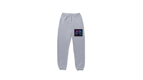 Level up your lounging game! These heather gray joggers feature the signature "Electric Pulse" graphic on the thigh, showcasing a sleek gaming controller reimagined with glowing digital energy. The intricate design, composed of vibrant neon lines and electric sparks in a stunning RGB palette, pops vividly against the neutral gray fabric.