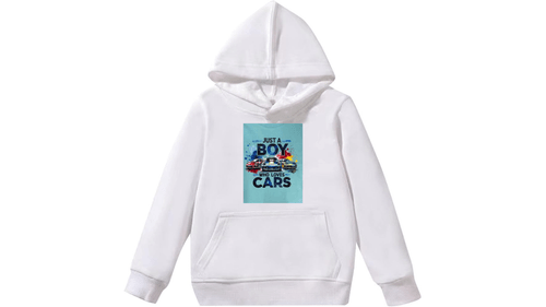 Stay cozy in the fast lane! This crisp white pullover hoodie features the signature "Just a Boy Who Loves Cars" design, showcasing three high-performance supercars against a dynamic teal splash background. Whether it’s for a chilly morning at the racetrack or just everyday comfort, this hoodie combines a fresh aesthetic with a passion for speed.