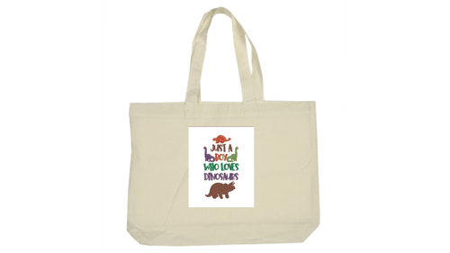 Carry your prehistoric passion everywhere! This durable canvas tote features our signature "Just a Boy Who Loves Dinosaurs" graphic, surrounded by colorful silhouettes of iconic dinosaurs. Spacious and sturdy, this bag is designed to hold everything from library books and school supplies to your favorite dinosaur figurines.