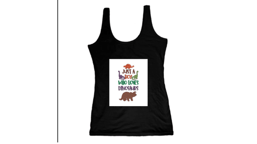 Stay cool on your next big adventure! This classic black tank top is designed for the ultimate dinosaur fan. Featuring the popular "Just a Boy Who Loves Dinosaurs" slogan and vibrant silhouettes of a T-Rex, Stegosaurus, Brachiosaurus, and Triceratops, this top brings prehistoric fun to the summer heat.