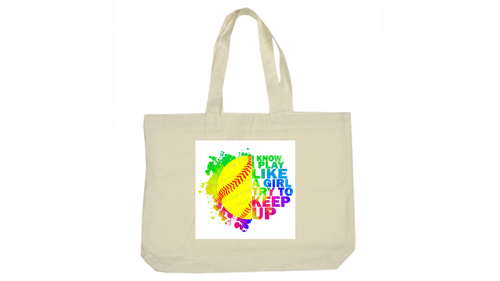keep up softball power tote bag bold rainbow graphic