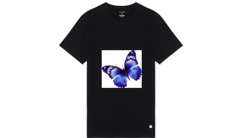Midnight Morpho Butterfly Graphic Tee – Vibrant Blue Aesthetic
