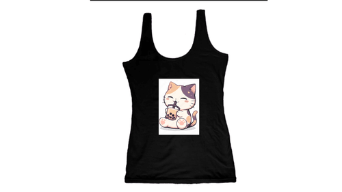 Satisfy your cravings for cuteness! This essential black tank top features an adorable calico cat enjoying a refreshing cup of bubble tea. Whether you're a boba fanatic, a cat lover, or a fan of the kawaii aesthetic, this top is the perfect blend of comfort and personality.