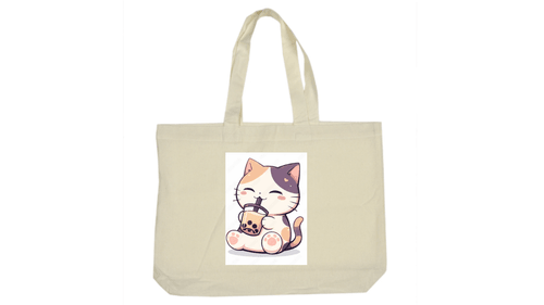 Carry your cuteness on the go! This charming canvas tote bag features our fan-favorite calico cat enjoying a sweet boba treat. Durable, spacious, and undeniably adorable, this bag is perfect for carrying your laptop, school books, groceries, or—of course—your next boba haul.