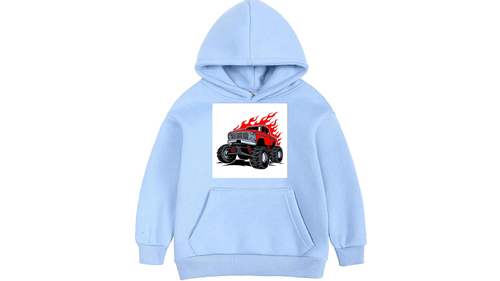 Stay warm with a side of heat! This sky blue pullover hoodie features our signature red monster truck graphic, complete with blazing racing flames. The vibrant contrast between the cool blue fabric and the fiery red artwork makes this piece a standout addition to any streetwear collection. Built for comfort and maximum style, it’s the ultimate layer for cool nights at the track or casual weekend hangs.