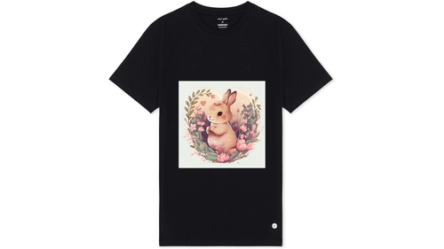 Bring a touch of enchanted nature to your wardrobe with this adorable graphic t-shirt. Featuring a beautifully detailed, storybook-style illustration, this tee captures a sweet bunny nestled within a lush, heart-shaped frame of spring blossoms and delicate greenery.